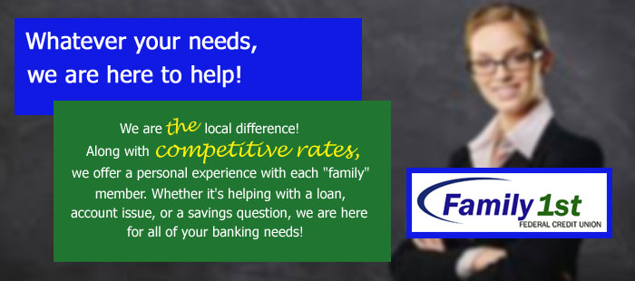 Each First Choice office has a drive-through, ATM and a night drop. Please identify yourself as a from Family 1st and be welcomed to the First Choice family. |